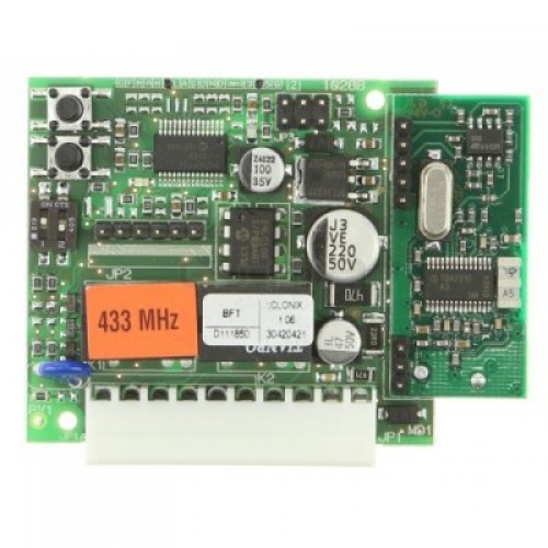 The BFT Clonix 2 delivers professional wireless control for gate and access systems throughout Dubai, Sharjah, and the wider UAE. This advanced 2-channel radio receiver operates on 433MHz frequency with Rolling Code security technology, supporting up to 128 MITTO2 or MITTO4 remote controls. Designed for direct installation on control panels, it provides secure and reliable remote access functionality for residential and commercial properties across the Emirates.